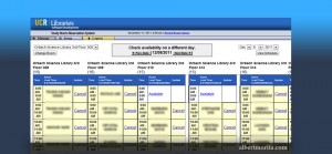 Developed the study room reservation system for the UCR Libraries. Students can book the various study rooms in the Libraries via the online system. They can view availability of rooms in the Libraries for each date and cancel their room reservation via a link on their confirmation e-mail. Staff can also schedule rooms for study groups with options to specify room and any repeating schedule. Written in PHP, MySQL, and Javascript. http://library.ucr.edu/view/studyrooms